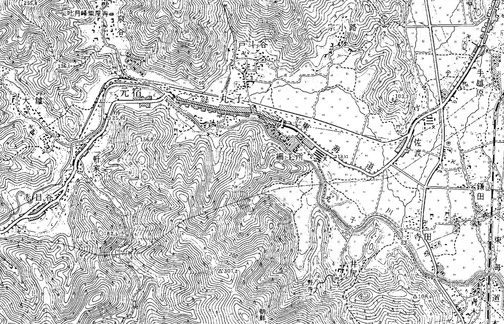 1) 国土地理院(1957)「1:25,000地形図静岡西部(昭和31年修正測量版)」