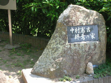 | 「林芙美子が多感な 青春時代を過ごし 林文学の芽生えを はぐくんだ家の跡 です」 と記された碑が海を眺めて建っている。 |