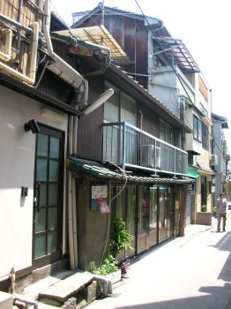 | この辺りには、昔からの建物も少しだけ残っている。木の手すりが珍しい。 | |