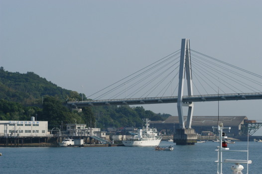 | 弓削瀬戸をまたいで弓削島と佐島を結ぶ弓削大橋も斜張橋です。 | |
